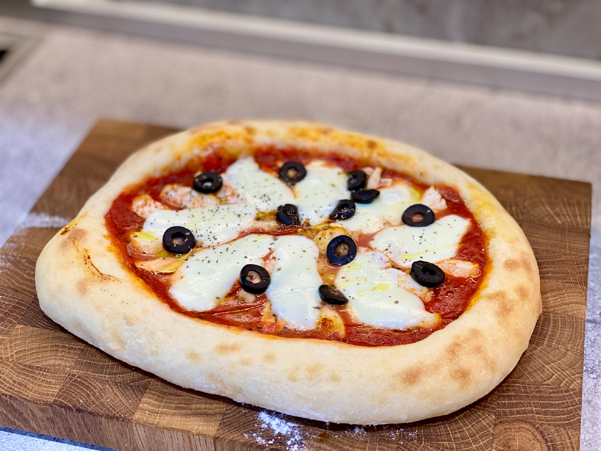 После нужно разделить тесто на будущие заготовки. Это количество на 3 пиццы, у меня кусочки были примерно по 270-280г.