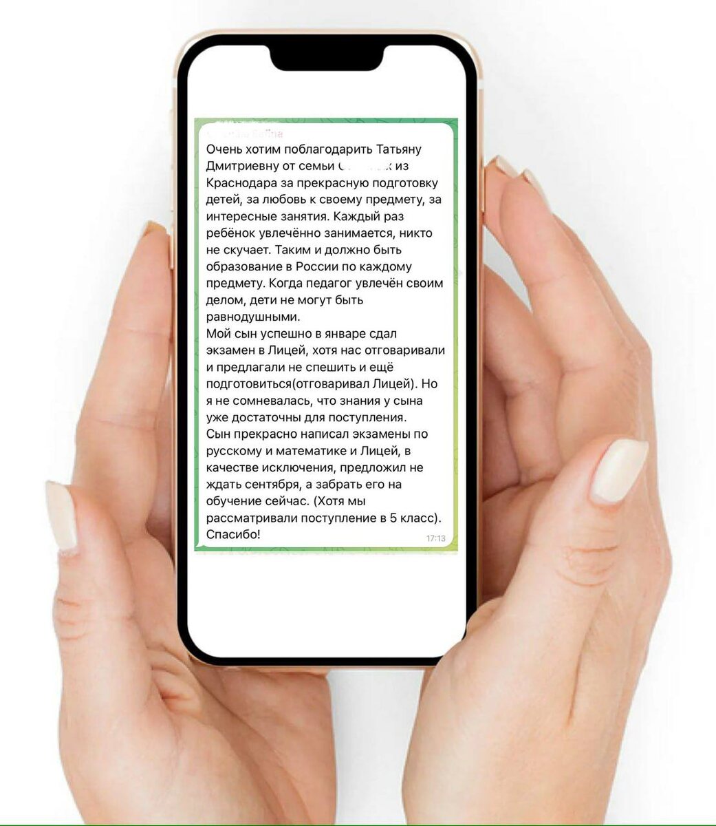 Ещё только февраль, а среди моих учеников уже есть «первая ласточка» – первое поступление) О. из Краснодара прекрасно сдал экзамены, и был принят в Лицей сразу же, в середине года. Это настоящий успех! К занятиям по русскому языку в мини-группе О. приступил в январе 2024 года. Мы основательно изучили программу за 3-й и 4-й класс и тщательно подготовились к экзамену в Лицее. Про таких, как О., говорят: «Огонь в глазах горит». С таким позитивным, активным и любознательным ребёнком работать одно удовольствие. Очень горжусь достижениями своего ученика, но и грущу немного: так жаль расставаться) Я глубоко признательна семье О. за высокую оценку моей работы, а от себя скажу так: "Сильная мотивация ребёнка к обучению – это, в первую очередь, заслуга родителей!" Никогда не устану это повторять.