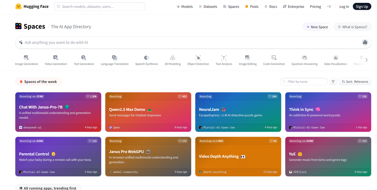 Hugging Face запустили каталог Spaces, где собрали 400 нейросетей