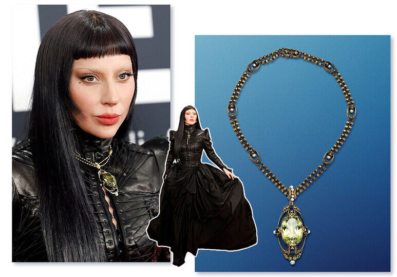 В прошлое воскресенье, 2 февраля, состоялась церемония вручения премии «Грэмми-2025». Лучшие представители музыкальной индустрии собрались вместе, чтобы получить долгожданные статуэтки, похвастать нарядами и украшениями. О самых интересных ювелирных находках — в нашем материале! Естественно, Леди Гага (она же Стефани Джоанн Анджелина Джерманотта) не могла прийти на премию в какой-нибудь золотой цепочке с фианитами. Актриса и певица надела редкое колье Tiffany & Co, выпущенное в начале 1930-х — с жемчугом, ониксом и большим зеленым турмалином. Придумала его дизайнер Мета Овербек — чтобы наглядно показать, как почитаемый брендом ар-нуво трансформировался в трендовый ар-деко. В 2019-м Леди Гага уже надевала драгоценности ювелирного дома — тогда она сияла на «Оскаре» в колье со 128-каратным Tiffany Diamond. Пока Бьянка Цезори эпатировала публику своим «нарядом» (который, на самом деле, даже нарядом не назовешь — так, тончайшая прозрачная сетка), ее муж, Канье Уэст, стоял рядышком — в скром