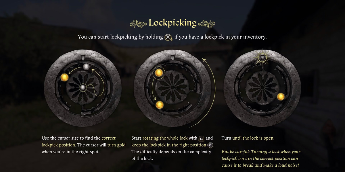 В Kingdom Come: Deliverance II взлом замков — одна из самых сложных, но полезных механик игры. Этот процесс требует навыков, терпения и хороших инструментов. В отличие от других RPG, игра предлагает реалистичную и сложную систему взлома, что делает ее еще более увлекательной. Чтобы начать взлом, вам понадобится хотя бы одна отмычка в инвентаре. Вот основные шаги: В конечном счете, просто практикуйтесь и вскоре будете интуитивно понимать процесс взлома замков. Совет: Если начальная точка золотого курсора неудобна, выйдите из мини-игры и зайдите снова — расположение изменится. Взлом замков считается незаконным, и NPC могут сдать вас охране. Вот советы по безопасному взлому: В процессе взлома герой будет получать опыт в навыке "Воровство", что откроет доступ к важным перкам. Совет: Отличный перк на ранних стадиях обучения взлому. Совет: Если вы планируете вскрывать несколько замков подряд, этот перк станет вашим лучшим помощником. Совет: Этот перк идеально подходит для опытных воров, кото