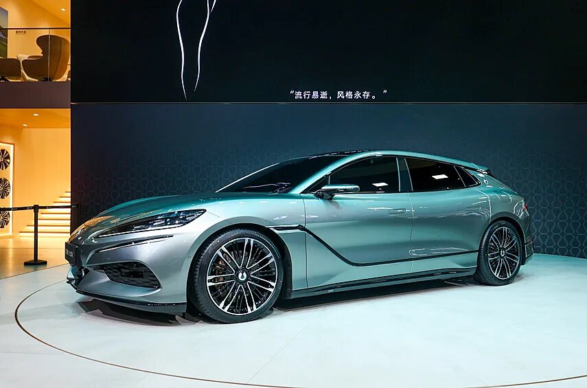 Хотите знать ,что за красавец? Всему своё время, но модель и вправду занимательная... Согласитесь очень приятный и при этом преемственный внешний вид Porsche Panamera. Данный автомобиль был представлен в 2024 году. И основной его целевой аудиторией является Европа, но не спешите огорчаться, немного подождать и вот уже и в России появятся первые экземпляры. Давайте рассмотрим, что из себя представляет данный автомобиль. Это электромобиль с запасом хода 630-1100км, ну что по современным меркам довольно не плохо, тем более в совокупности с двигателем 870 л.с/640 кВт в базовой комплектации и 966 л.с/710 кВт в жирной комплектации. Стоит также учитывать, что данный автомобиль является полноприводным и разгон до 100км/ч за 3.4 секунды. И всё это Премиальный суббренд Denza от компании BYD с их флагманским шутинг-брейком Denza Z9 GT! Экстерьер сдержанный и молодёжный. Тут всё понятно, как говорится на любителя, а что же там с интерьером? А интерьер тут в стиле современного китайского авт