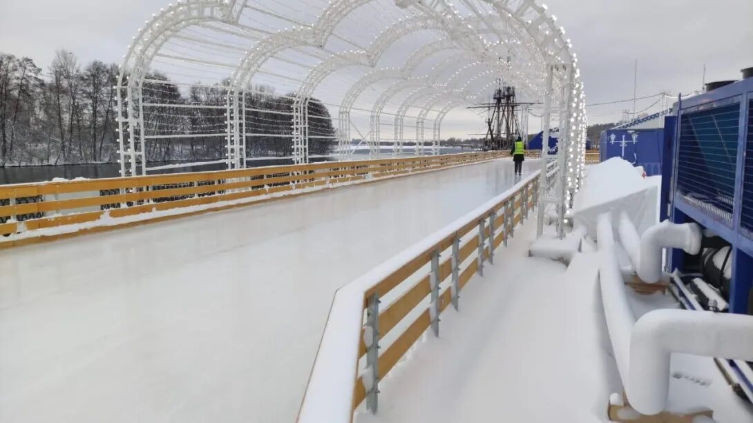 Закрытый из-за снегопада каток на Адмиралтейской площади возобновил работу