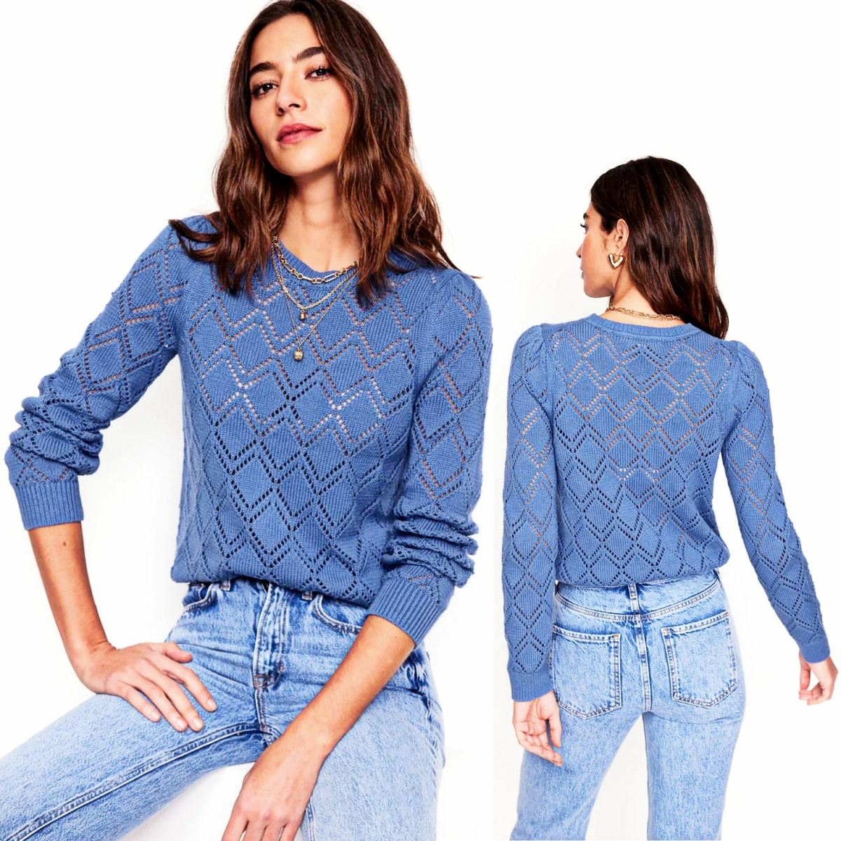 Пожалуй, ажурные ромбы — самый простой и универсальный узор, с которым справится даже новичок! Но от этого он не становится менее красивым, верно? Фабричная модель из лёгкого мерсеризованного хлопка идеально подходит для будущей весны.