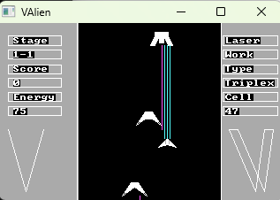 Космическая стрелялка в вертикальном формате. Ты и пришельцы. Ты и космические корабли. Космос. Движение стало быстрее, чем в прошлой игре - Свободное Линейное Пространство. Новая графика. И главное тут – что выглядит по-другому, тема другая. И более быстрое движение. В, этот раз, идея для игры - фантастика и космические сериалы. Такие как Визитеры или Ви, Буква В латинского алфавита.V. Сериал, который из 80ых только. Это главное. Хотя, у меня все по- другому. И, какие-то, еще сериалы типа Звездные Врата Сг1, Атлантида. Без фантастики не обойтись. Как говорится. Раз космос – то фантастика. Три вида оружия. Это стандартный лазер. Он у тебя всегда. И еще несколько лазеров. Которые, ты как бонус, собираешь. Из летающих кубиков. Это лазер триплекс - тройной лазер. И лазер боковой. Эти несколько лазеров имеют заряд батареек. И, когда, он заканчивается, то ты, снова, переходишь на самый первый лазер. Летают квадратики – это бонусы. И, ты их подбираешь и получаешь лазер с зарядом батареек 100