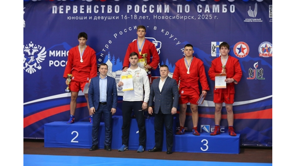 В Новосибирске завершилось первенство России по самбо среди юношей и девушек до18 лет. На протяжении четырёх дней за награды и место в национальной сборной боролись более 650 атлетов со всей страны. Вызов-приглашение для участия в турнире от Брянской области пришел шести юношам и одной девушке. По итогам соревнований только один представитель брянского самбо оказался в призерах. В весовой категории до 98 килограммов в заключительный день соревнований бронзовую медаль завоевал Роман Минаков (на фото - крайний справа). Победителем первенства стал представитель Санкт-Петербурга Илья Никульшин. По спортивному принципу в самбо только победители отправляются на первенство мира, а серебряный призер – на первенство Европы. ФОТО: sambo.ru Брянский самбист Роман Минаков стал бронзовым призером первенства России