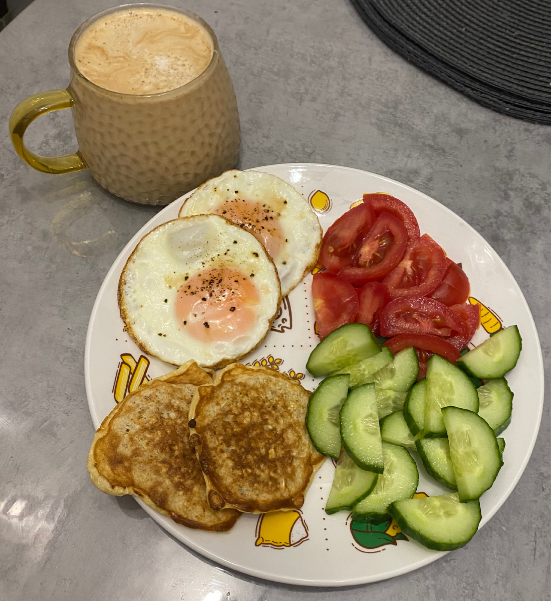 Приветствую вас! Сегодня шестой день моего эксперимента с методом «здоровой тарелки». Я продолжаю придерживаться этого подхода к питанию, чтобы улучшить своё здоровье и достичь поставленных целей по снижению веса. 📊 Результаты за неделю: За шесть дней я уже чувствую изменения в своем теле. Энергии стало больше, а тяга к сладкому заметно снизилась. Весы показывают небольшой минус, но самое главное – я стала лучше понимать свои потребности в еде и научилась слушать сигналы своего организма. 💪 Советы для тех, кто начинает: 1. Готовьте заранее. Заранее нарезайте овощи и готовьте белковые блюда, чтобы всегда иметь под рукой здоровые варианты перекусов. 2. Пейте воду. Вода помогает поддерживать метаболизм и снижает чувство голода между приемами пищи. 3. Не забывайте про физическую активность. Даже небольшая прогулка после еды может ускорить процесс похудения. Питание сегодня такое: Завтрак: 🍳 2 яйца жареных, 2 овсяных блинчика, огурец, помидор. Кофе с молоком. Обед:🥘 Каруста тушена