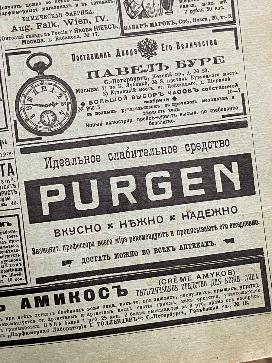 Приглядитесь на сделанные мной фотографии рекламы, публикуемые в журналах до 1917 года, она действительно заставляется улыбаться и удивляться.