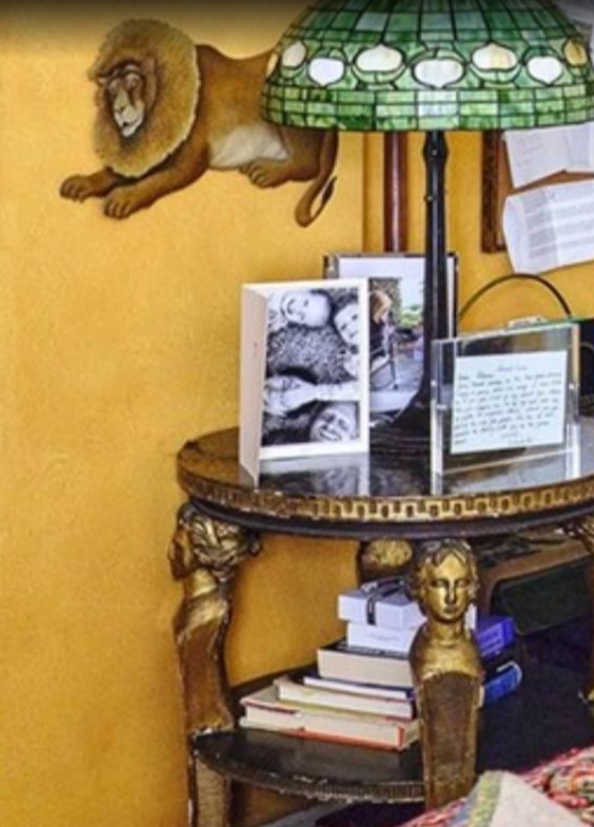 При ближайшем рассмотрении, в снимке узнаётся рождественская поздравительная открытка, та самая - для друзей. По обстановке комнаты и фотографии на заднем плане угадывается, что столик находится в доме известной феминистки и подруги Меган, Глории Стейнем. В интернете есть интервью с ней из собственного дома, она там проводит краткую экскурсию, обстановка, столик, лампа, звери на стене, всё совпадает.