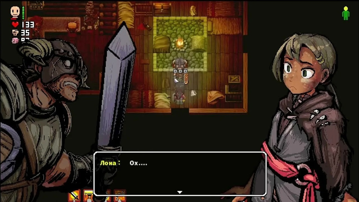 Если на уровне визуала проект с пиксельной графикой и стилизацией под классические JRPG мало кого удивит, то сюжет... тоже вас не порадует. Не то, чтобы его в «Лоне» нет, просто он максимально простой и тривиальный. На острове разразилась эпидемия, вроде как назревает гражданская война и вторжение интервентов, ну и протагонистка, как обычная девушка без претензии на героизм, естественно, хочет свалить по дальше с этого цирка пока не стало слишком поздно. И весь сюжет наступает это самое «поздно» и после всех испытаний наша барышня благополучно (нет) покидает это проклятое место, ну или не она, а её дочь/внучка, но это уже про геймплей.