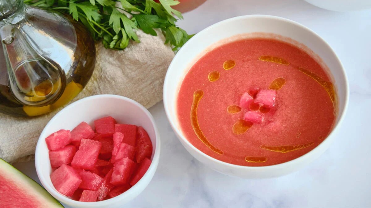 «Летний гаспачо с арбузом и огурцом — освежающий суп для жарких дней!»
