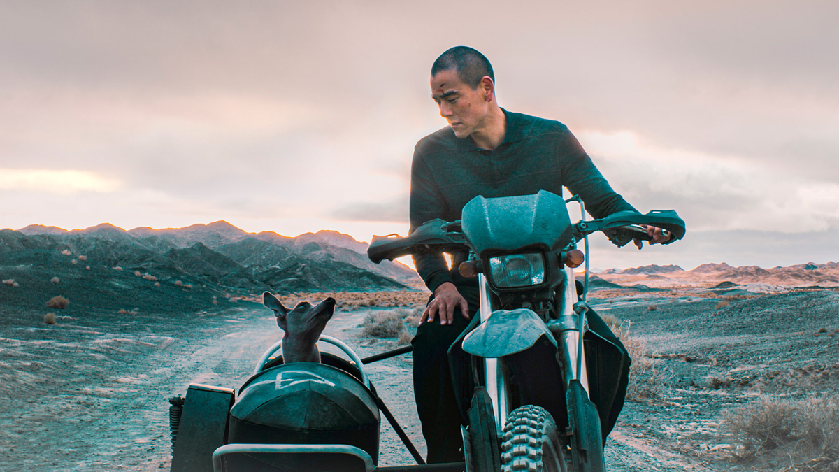 Черному псу без имени, который становится Лану другом, слова не нужны — двое отлично ладят и понимают друг друга. Специально для пса человек крепит к своему мотоциклу коляску.