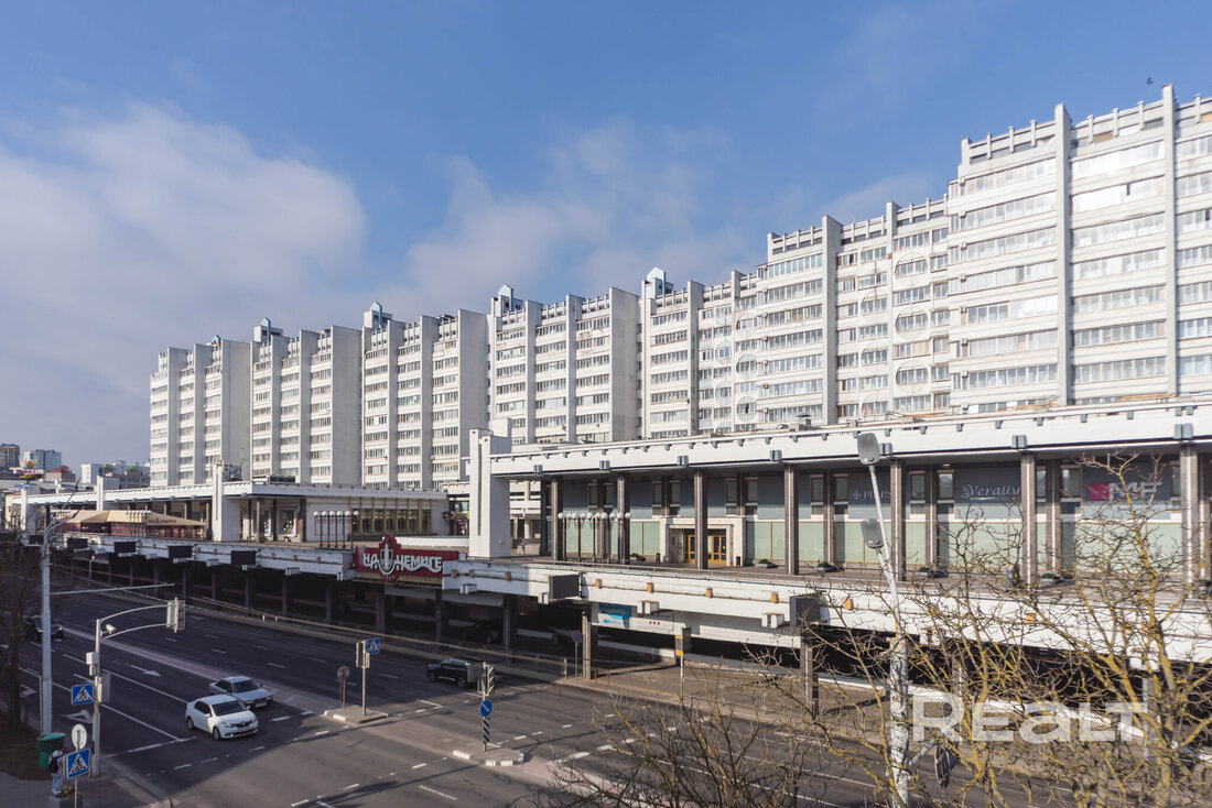 В известном доме, который был построен в советский период на Немиге, продается квартира с современной планировкой и ремонтом. С двух лоджий открывается живописный вид на историческую улицу. Оцените интерьер и стоимость квартиры. Дом на Немиге, 12 — является частью большого архитектурного проекта Сергея Мусинского, который строился 15 лет. Несмотря на то, что визуально здание кажется единым домом, 400-метровый жилой комплекс разделен на 4 адреса. 12-й дом был возведен последним, в 1990 году в 12 этажей. На 8 продается двушка в 56,8 м². В квартире была сделана перепланировка. Сейчас это евродвушка с совмещенной кухней-гостиной-коридором. Перепланировка согласована и узаконена. В двушке новый ремонт, где заменили проводку, трубы, сантехнику. Здесь было выполнено утепление и шумоизоляция. Кухня обставлена встроенной бытовой техникой: холодильником, плитой, микроволновкой и духовым шкафом. Рядом — круглый обеденный стол. Гостиная также обустроена мебелью и техникой. Из гостиной ведет дверь