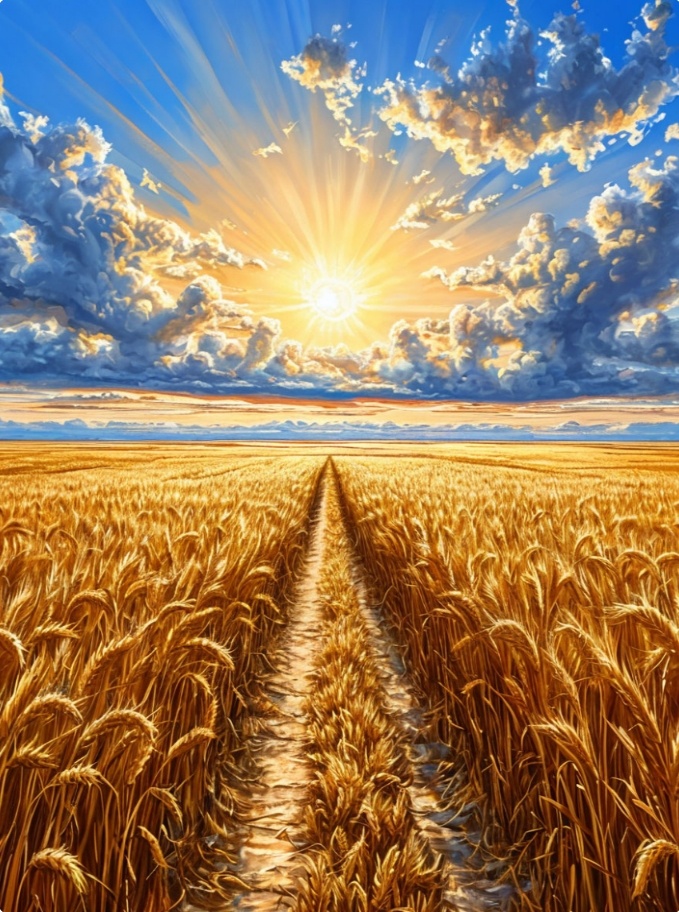 Они так и шли через поле, лаская колосья, не останавливаясь. К закату минули поле и вышли на его кромку. Развернулись и смотрели на поле уже с этой стороны. Оба были одеты теперь по-другому, Эва - в красивом летнем платье и лёгких туфлях, Орест - в белой футболке, лёгких летних брюках и сандалиях.