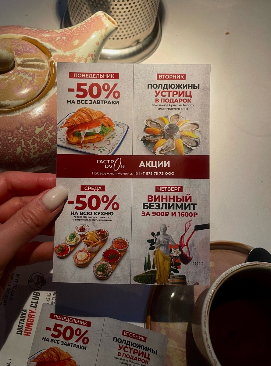 А также есть акции и на другие дни недели, кроме пятницы, субботы и воскресенья.