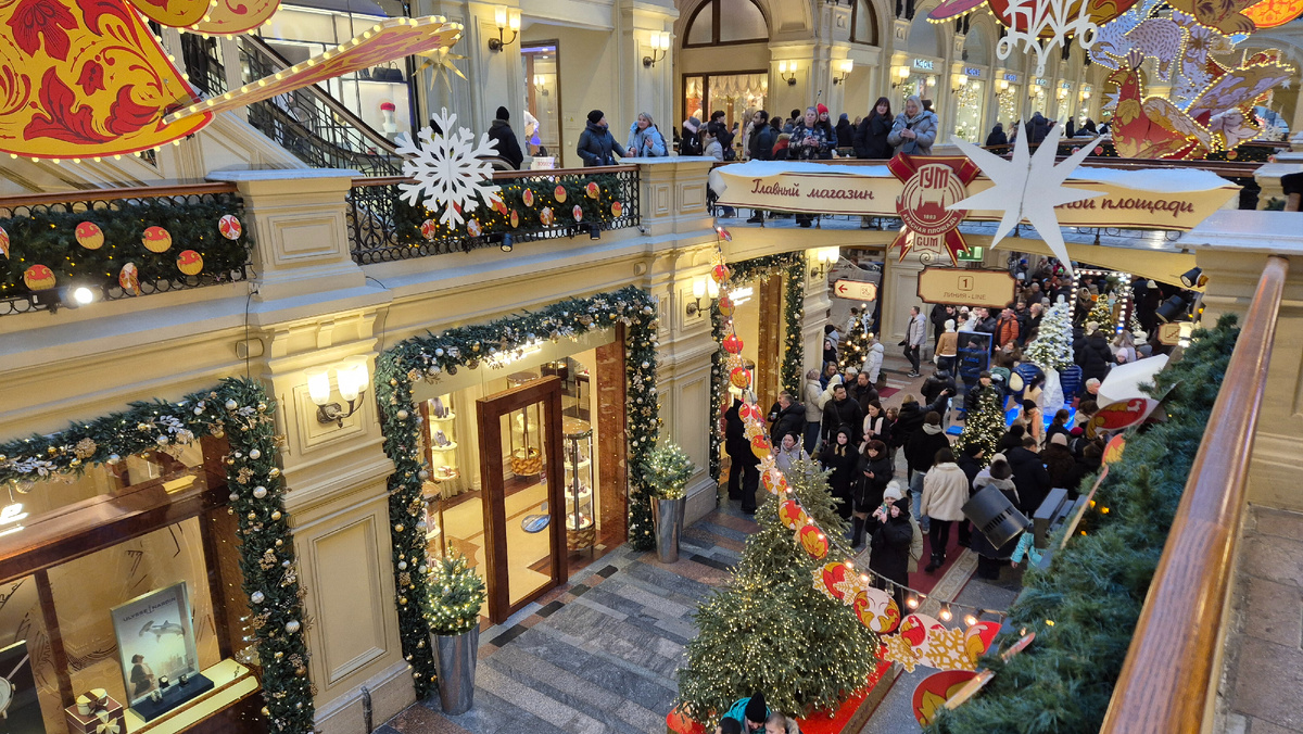 Всем привет! Новогоднее чудо в Москве! Целая неделя каникулярного времени. Увидеть все, что хочется!))) И даже больше. Нельзя побывать в Москве и не зайти в ГУМ! Вместо фонтана в ГУМе новогодняя елка, повторяющая ту, что стоит на улице под открытым небом на Красной Площади! Как много в моей жизни Щелкунчиков в этом году!) Красивые сувениры сразу обращают на себя внимание! Елочки в ГУМе авторские. Это уже традиция. Интересно протйтись по бывшим Верхним торговым рядам. Прогулка по каждому их трех пассажей становится настоящей экскурсией. Посетителей в ГУМе много, очень много! За мороженым очереди. В руках несут пакетики с купленной шоколадкой. Украшенный в единой стилистике ГУМ смотрится аккуратной, празднично и немножко пафосно! На линиях универмага раскинулся фантастический лес. Украшено несколько десятков ёлок - в традиционной стилистике, в новаторском ключе или с оглядкой на эстетику брендов, представленных в магазине. Здесь можно увидеть ёлку-клумбу, праздничное дерево в виде пирожн