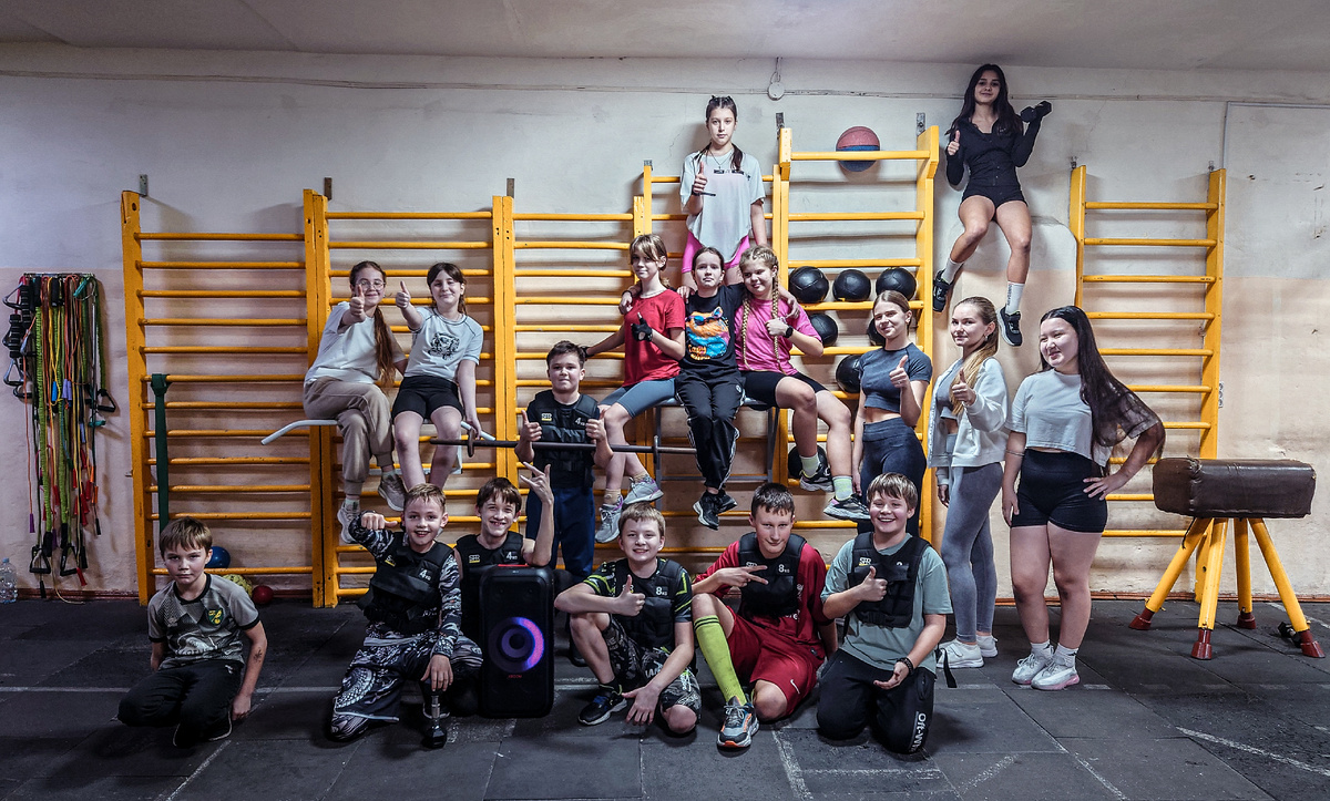 📸 Финальное коллективное фото юных спортсменов после круговой высокоинтенсивной тренировки 💪