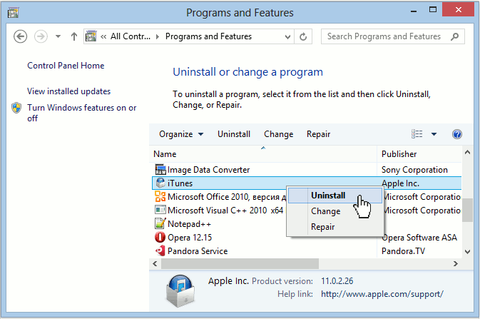 Удаление ненужных программ