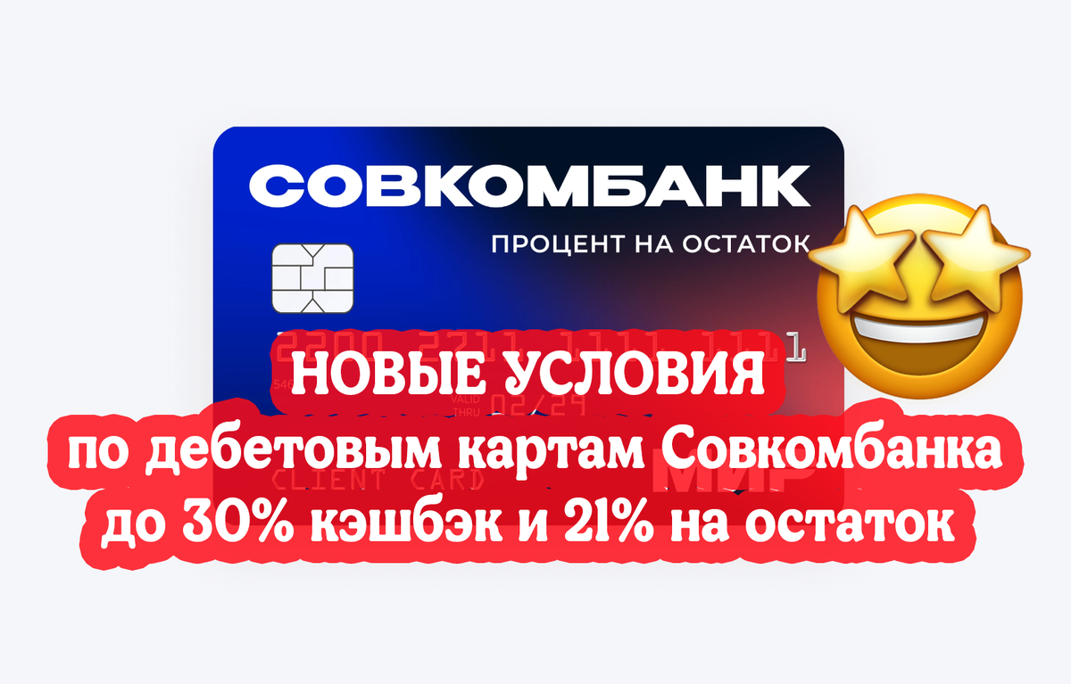 Кешбэк 30% и на остаток 21% - новые условия по дебетовкам Совкомбанка
