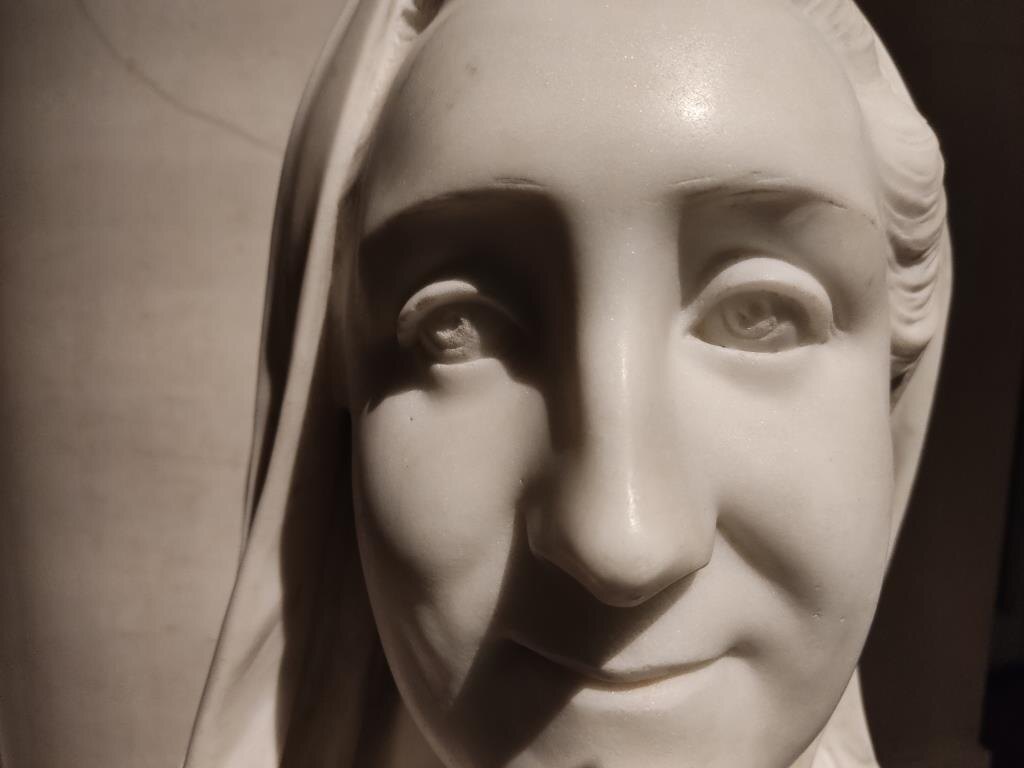 Первый — мраморный бюст, на котором императрица чуть с уловимой натяжкой улыбается. Второй — картина маслом на холсте.