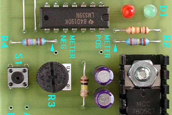 Вольтметр, подключенный через R3 к выводам R2 и R4, используется для регулировки настройки значений отключения. По мере увеличения сопротивления R3, разность напряжений между плюсовым входом микросхемы МС2A и минусовым входом МС2B увеличивается. Этим увеличивается уровень тока отключения цепи в прямом и обратном направлениях.