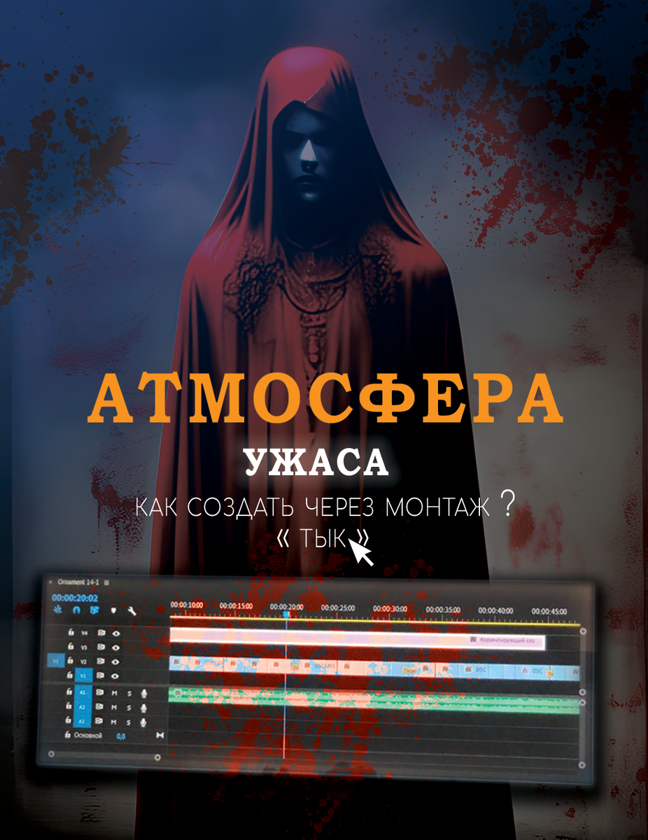 Наше комьюнити «тык» Атмосфера ужаса — это не только темные декорации и жуткие звуки. Это искусство, где монтаж становится главным инструментом, способным превратить обычные кадры в кошмар. 1. Ритм как сердцебиение страха Ритм монтажа задает пульс истории. Быстрые перебивки, как в культовой сцене убийства в душе из «Психо» (реж. Хичкок), создают ощущение паники, заставляя зрителя задыхаться. Но иногда медленный темп страшнее: затяжные планы, как в «Сиянии» Кубрика, заставляют зрителя ждать неизбежного, усиливая напряжение. Сочетание медленных и резких переходов — ключ к контролю над эмоциями . 2. Крупные планы: страх в деталях Внутрикадровый монтаж фокусируется на мелочах, которые становятся символами ужаса. Например, дрожащая рука, цепляющаяся за дверь, или зрачок, расширяющийся от страха, — такие детали, как отмечает Лев Кулешов, меняют восприятие всего кадра . Крупные планы лиц актеров с нейтральным выражением, как в «Эффекте Кулешова», позволяют зрителю проецировать собственные ст