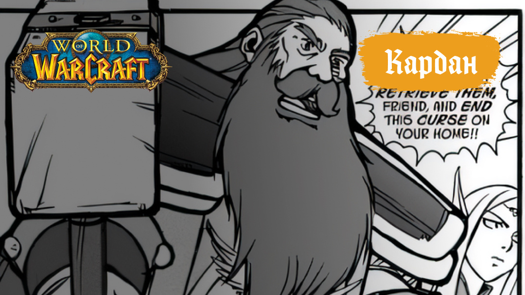 Кардан — гном-берсерк из клана берсерков, который сражался вместе с Дуганом и Волданой против Орды во время Второй войны. Когда Дуган услышал, что горожане исчезают, исследуя проклятую башню Каражана, он отправился вместе с Карданом и Волданой спасать пропавших жителей. Злой силы в башне было слишком много, и пока Кардан и Волдана сбежали, Дуган остался позади. Кардан и Волдана сообщили печальную новость жене Дугана Адене. Но горе её было настолько велико, что она сошла с ума и стала непригодна для воспитания своих дочерей-близнецов. Поэтому Волдана и Кардан решили почтить память своего коллеги и вырастить девочек-близнецов как своих собственных.