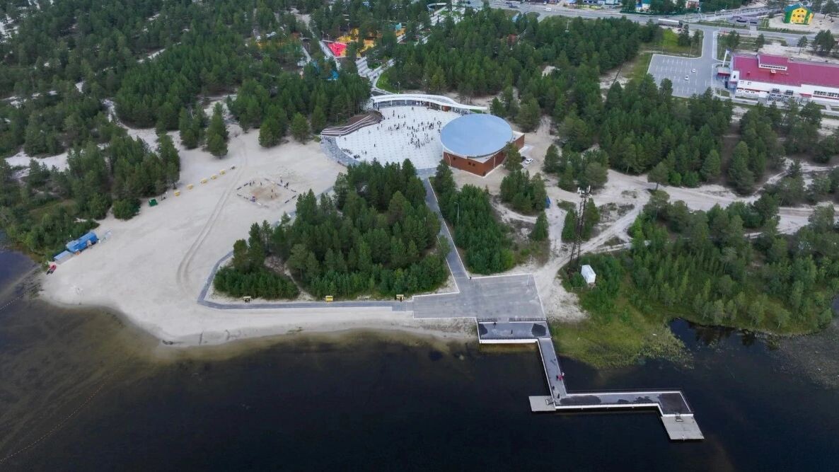 На этапе подготовительных работ подрядчику предстоит оборудовать строительную площадку, выполнить демонтажные работы, установить временные здания и разместить емкость с водой на случай пожара. Среди объектов, которые предстоит возвести, — кафе «Полярная ночь», здание на пляже, пирс, амфитеатр, пергола амфитеатра, арт-объект для росписи, арт-объект «Человек», арт-объект «Созвездие», арт-объект «Направление света» и трибуна.
