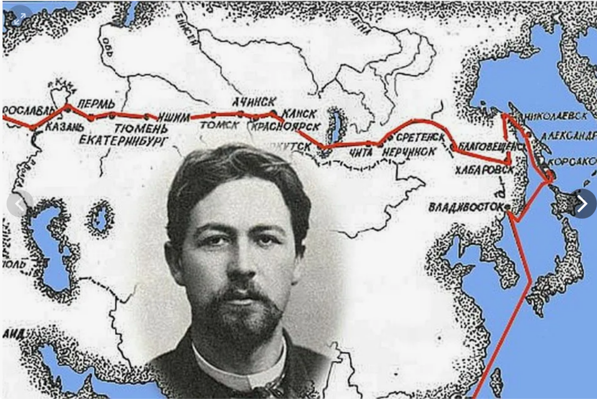 «21 апреля 1890 года, красивый и молодой Антон Чехов с дорожной фляжкой коньяка через плечо и револьвером Smith & Wesson в кармане прощался с родными и друзьями на Ярославском вокзале. Он отправлялся на «край географии» — на Сахалин и далее вокруг Азии».