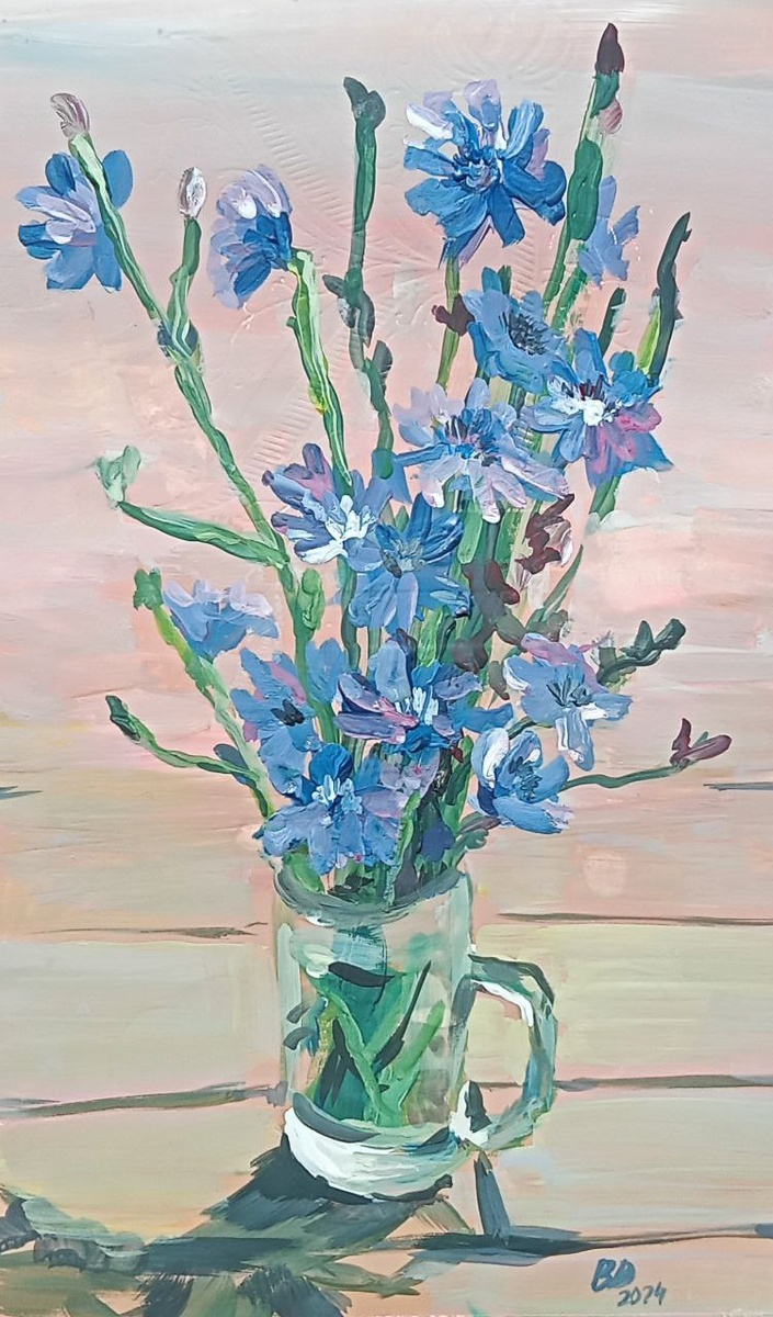 Уважаемые читатели продолжаем наш конкурс. На этот раз представляю Вашему вниманию работы Дворяниновой Валентины. Автор работ живет в Самаре. Вот так Валентина рассказала о своем творчестве: "Все детство и юность помню себя рисующей, а потом был перерыв почти в 30 лет. Три года как начала опять рисовать". 1. Букетик цикория, 2024 год. 2. Девушка в цветастой шляпке, 2024 год. 3. Кофе, булочки, любовь, 2024 год. 4. Подсолнухи, 2024 год. 5. Предзимье, 2024 год. 6. Синие бутылочки, 2025 год. 7. Сон на качелях, 2023 год. 8. Фиалка на северном окне, 2024 год. Телеграмм канал Валентины: https://t.me/devochkanashare73. Канал "ПАНТОГРАФ". Уважаемые читатели наш конкурс будет бессрочным, все кто из Вас занимается живописью и другими видами искусства - присылайте снимки Ваших работ на адрес: pantografkanal@yandex.ru. Более того зреет идея расширить форматы конкурса, добавить поэзию и иные виды творчества.