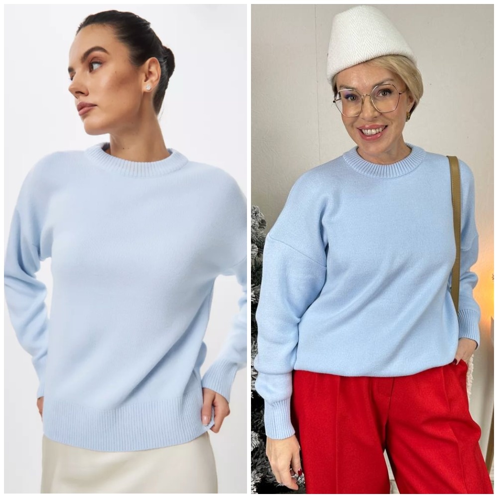 Здравствуйте, дорогие читатели! Меня зовут Ирина, я - стилист, и на этом канале показываю одежду и аксессуары с Wildberries такими, как они есть, то есть, из серии "ожидание/реальность". Мои параметры: рост 169 см, вес 67 кг, 94-74-100 ✅Основной канал: Стильно - не значит дорого! Ставьте лайк в поддержку канала, и давайте смотреть на мою сегодняшнюю покупку. Базовый свитер в прекрасном небесно-голубом цвете, сшитый из мягкой, тактильно приятной ткани. В составе много шерсти, поэтому он достаточно теплый. Гладкая вязка не добавит вам лишнего объема, а длина позволит носить свитер и навыпуск, и заправляя. Свитер представлен в двух размерах: 42-46 и 48-50, соответственно, я выбрала второй вариант. Посадка получилась отличная. Свитер не сильно оверсайз. Есть, кстати, много других расцветок. Ну а цена для такой вещи - просто сказка. Видео-обзор: Если вам нужен артикул свитера, ставьте + в комментарии, всем отвечу. Ставим вердикт свитеру: ДА или НЕТ?⬇️ Подписывайтесь✅на канал, чтобы увидеть