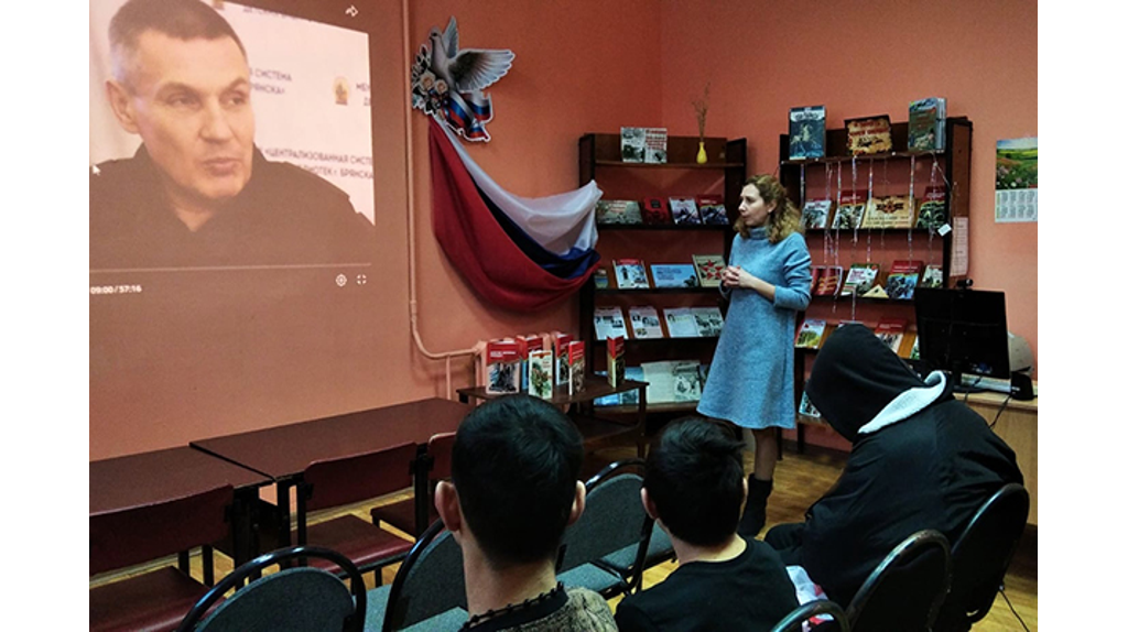 В Брянске для несовершеннолетних осужденных организовали посещение детской библиотеки №4. Мероприятие было организовано в рамках работы по патриотическому воспитанию, рассказали в пресс-службе регионального УФСИН. Ребятам показали интервью «Диалог с героем Брянщины». Заведующая библиотекой Надежда Клочкова рассказала о подвиге Андрея Фроленкова, который проявил мужество и героизм в ходе освобождения Чернобыльской АЭС в начале СВО. Несовершеннолетних сопровождал инспектор филиала уголовно-исполнительной инспекции Александр Бобков. Несовершеннолетним осужденным показали «Диалог с героем Брянщины»