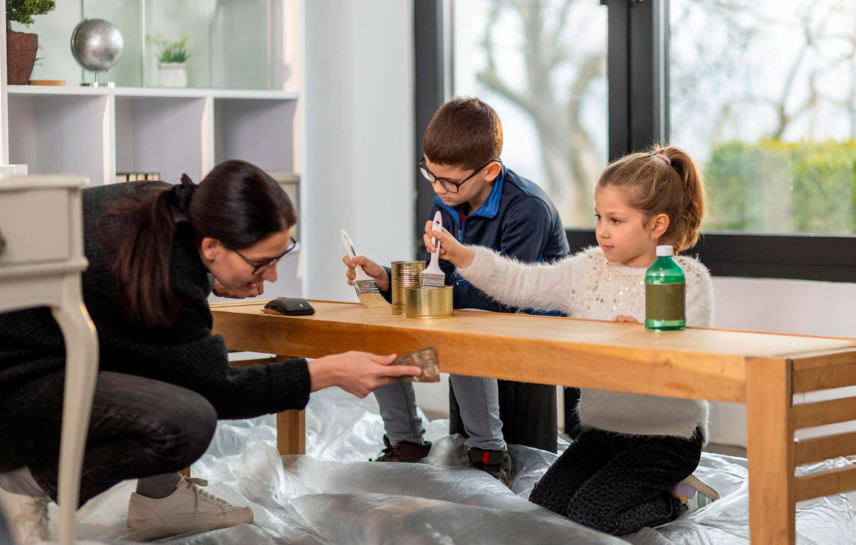 В целом для столешниц подходят водно-дисперсионные краски. Такие материалы позволяют обновить старый обеденный стол или мебель. Но учитывайте, что краски на водной основе боятся влаги. Акриловые краски более прочные и позволяют менять цветовую гамму любых деревянных поверхностей.