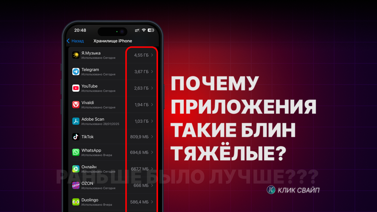 Вы когда-нибудь задумывались, почему современные приложения занимают столько места на вашем телефоне или компьютере? Ведь ещё пару лет назад они были куда компактнее. Что случилось? Почему каждое обновление требует всё больше и больше гигабайт? Давайте попробуем разобраться.