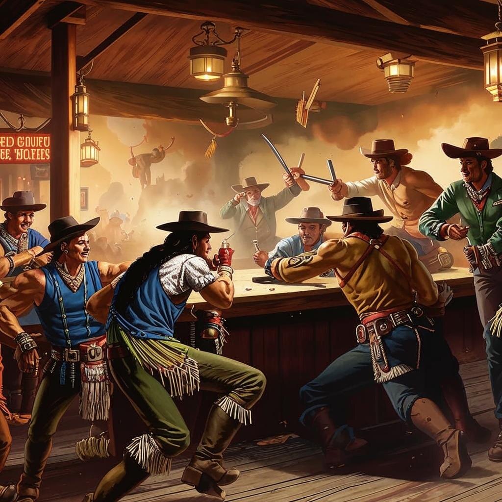 Нападение началось внезапно. Десятки воинов племени апачей обрушились на салун, стреляя из луков и Winchester'ов. Деревянные стены saloon'а содрогались от ударов и выстрелов. Посетители залегли за опрокинутыми столами, создавая импровизированные укрепления.