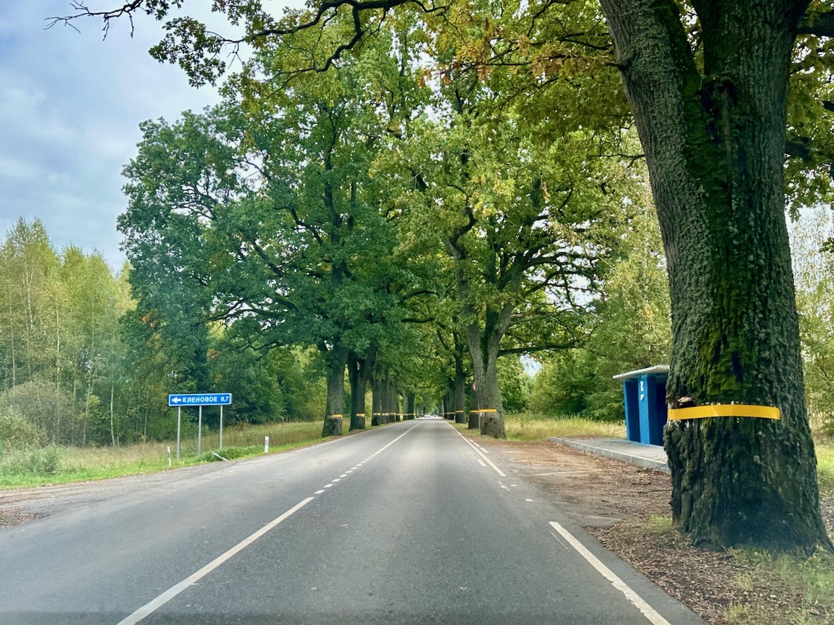 Есть в Калининградской области достопримечательность, которая досталась ей от Пруссии и которая вызывает много противоречивых мнений - быть или не быть ей в наши дни. Достопримечательность эта природная, поэтому поступить с ней, как с кирхами - а, пусть стоят, время, дожди и ветер сами справятся - не получается. Речь про деревья, которые растут вдоль старых дорог Калининградской области. Когда мы первый раз въехали на такой участок дороги, не могли остановиться фотографировать и снимать видео, до того фотогенично они выглядят! Кроны смыкаются над головой, образуя природный тоннель. Лучи солнца пробиваются сквозь листву, ровные стволы стоят плотным рядом, действительно, как бравые солдаты. Наш гид ещё подбросил масла в котел, показав нам фотографии во время дождя (прямо мистика!) и золотой осени (прямо в сердечко!). Но у этой красоты есть и обратная сторона медали. Почему раньше сажали деревья вдоль дорог? Дорога укрепляется, меньше эрозии почвы, защита от ветра и снега, эстетика в конц