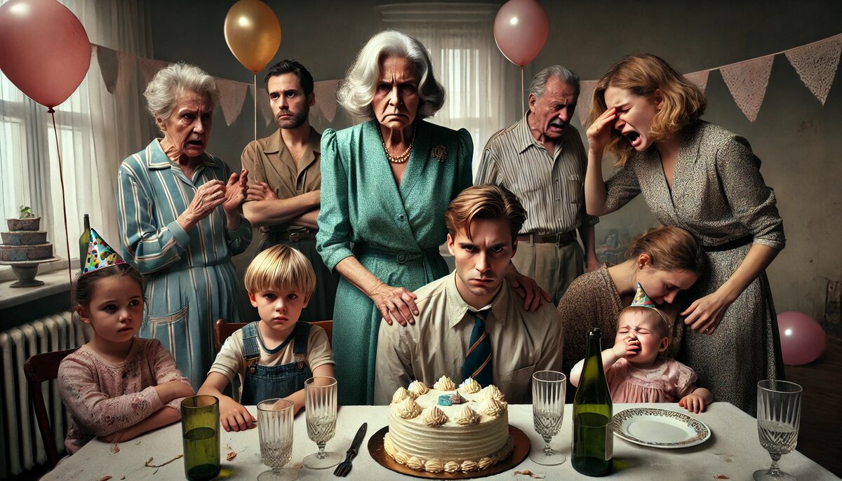 В комнате повисло гнетущее молчание. Праздник окончательно развалился, как тот торт под ударами ложки. Гости потихоньку принялись убирать следы — кто-то убирал испачканные приборы, кто-то замачивал скатерть. Денис стоял у окна, и на его лице читался детский страх: «Почему моя бабушка так себя ведёт? Разве она нас не любит?»