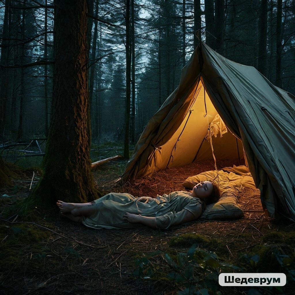 Молодая фотограф по имени Алина всегда искала вдохновение в дикой природе. Ее страсть к пленочной фотографии привела ее в самые отдаленные уголки страны, где она снимала пейзажи, которые казались нетронутыми временем. Но на этот раз она решила бросить себе вызов — провести день и ночь в глухом лесу, где, по слухам, даже местные охотники бывали редко. Алина не боялась. Она была уверена в своих навыках и опыте, ведь она не раз ночевала в палатке, слушая шепот ветра и треск костра. Солнце уже клонилось к закату, когда Алина закончила устанавливать палатку. Весь день она провела, фотографируя древние деревья, покрытые мхом, и густые заросли папоротников. Пленочная камера, доставшаяся ей от деда, щелкала с приятной регулярностью, фиксируя каждый уголок этого загадочного леса. Она чувствовала себя в своей стихии, наслаждаясь одиночеством и тишиной, нарушаемой лишь пением птиц и шелестом листьев. Когда стемнело, Алина разожгла небольшой костер, чтобы согреться и приготовить ужин. Лес вок