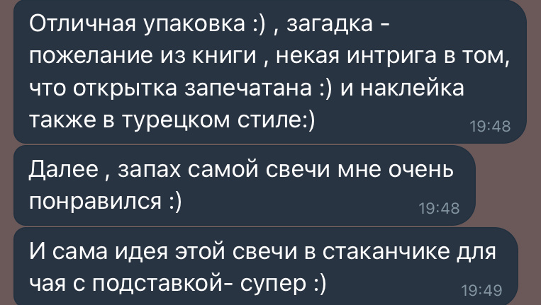 Мы переписывались с мая. Ну, как переписывали? Общались по поводу заказа свечей.