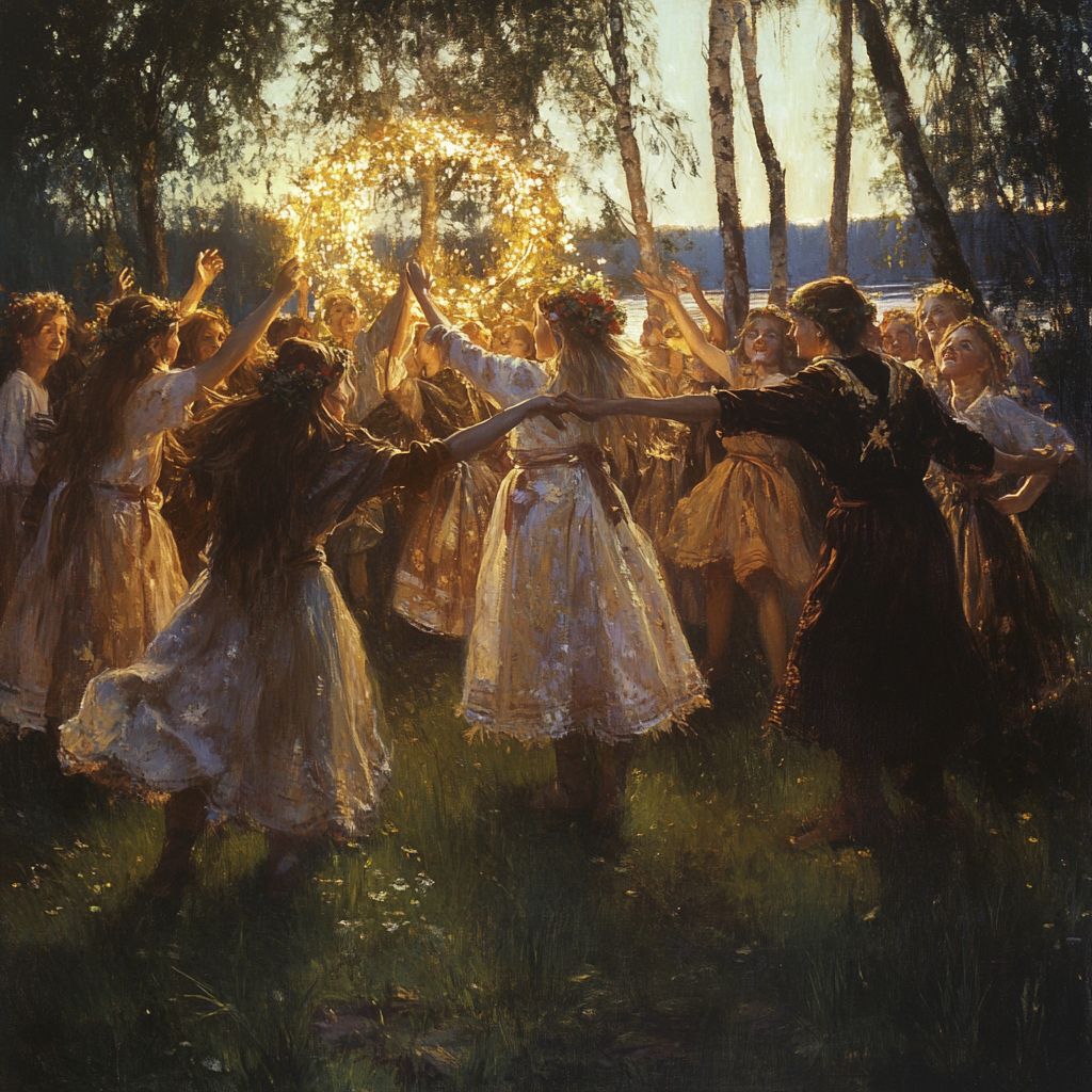 Плетение венков: Девушки плели венки из цветов и пускали их по воде. Если венок тонул, это считалось плохим знаком, а если он плавал долго — хорошим предзнаменованием для будущей жизни.