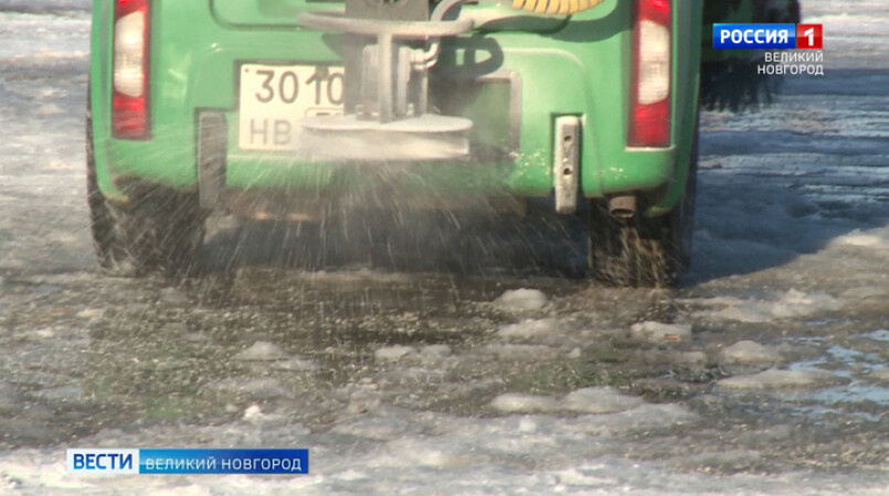 В Великом Новгороде коммунальные службы тестируют новые противогололедные материалы