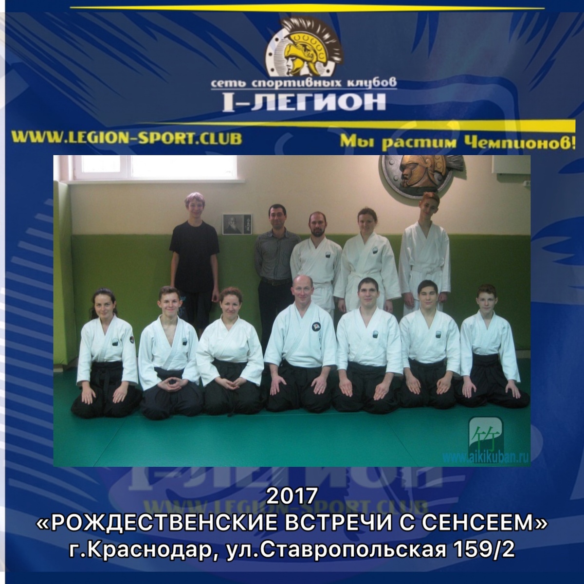 6-7 января 2017 года, в Краснодарском крае состоялось мероприятие нового формата – «Рождественские встречи с сенсеем». В ходе которых были проведены несколько дружеских тренировок, которые проходили в клубе «Тессен-Краснодар» (на базе спортивного клуба «I-Легион», ул. Ставропольская 159/2) и клубе японских боевых искусств «Акайкан» (станица Азовская, ул. Октябрьская, 198). Тренировки прошли в легкой непринужденной атмосфере. В завершении состоялся коллективный оздоровительный поход в русскую баню (гостиничный комплекс «Николино», станица Убинская). Все участники мероприятия получили множество положительных эмоций и бодрость духа для продолжения регулярных занятий по Айкидо. В процессе общения с сенсеем были достигнуты договоренности о проведении дополнительного семинара в начале марта текущего года в Северском районе. Выражаем благодарность администрации гостиницы «Николино», руководству спортивного клуба «I-Легион» в лице Юрия Викторовича Сверлина и конечно же Вячеславу Евгениевичу Са