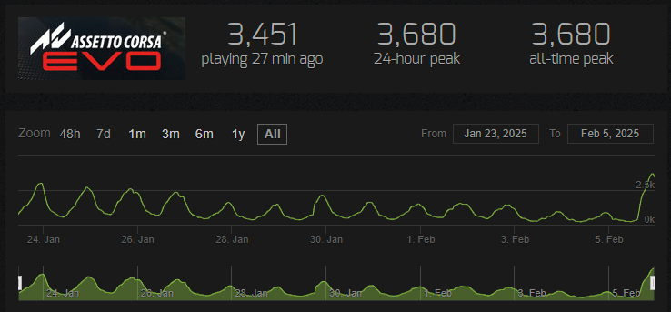 - сохраняемую кастомизацию автомобилей. Как говорят сами разработчики в своих социальных сетях, это лишь первый шаг в развитии игровой экономики и системы кастомизации. Действительно, выйдя в ранний доступ в январе текущего года, игра не содержала никакого контента, который позволил бы любителям симрейсинга задержаться в ней более чем на 1-2 вечера. Патч этот, действительно ждали, и сегодня игра обновила максимальный показатель онлайна, который на момент написания статьи составил 3 680 игроков. Помимо контентных добавлений новая версия принесла ряд незначительных изменений, затрагивающих звуки, картинку, управление, геймплей и некоторые детали трасс. Ознакомиться с полным списком изменений можно на соответствующей странице в Steam. ПОДСКАЗКА: Если у вас на главной странице отображается статус «OFFLINE», по