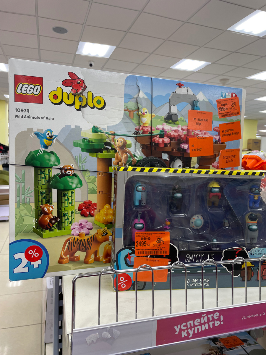 В декабре заглянула в «Детский мир» присмотреть подарки. Пока прогуливалась между рядов, на глаза попалась полка с уценёнными игрушками. Мое внимание привлёк - конструктор LEGO 10974. Большая коробка с любимым конструктором! Цена со скидкой — 3 999 рублей. Казалось бы, выгодное предложение, но потом читаю причину уценки: «Не работают основные функции, отсутствуют несколько деталей». То есть это даже не просто товар с повреждённой упаковкой — он изначально неполноценен. Но почему тогда за него просят почти 4 000 рублей? Да, скидка 50%, но ведь в таком виде этот набор уже нельзя назвать полноценным конструктором. Покупатель получает игрушку, которая изначально не сможет выполнять свою основную функцию, а значит, её ценность сильно падает. Считаю, что выгодной ценой для такого товара было бы 2000руб., как набор запасных деталей. А когда его ставят на полку с «выгодными предложениями» за 50% от изначальной цены, это больше похоже не на скидку, а на попытку избавиться от брака, при этом н