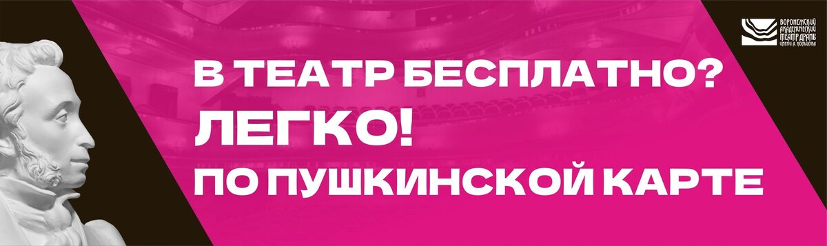 Почитателям театров и любителям культурного досуга, напоминаем, что молодые люди от 14 до 22 лет могут посещать наши спектакли за счет программы «Пушкинская карта». Ежегодно на билеты в театр можно потратить до 5000 рублей из средств федерального бюджета. Как получить карту? Если у вас еще нет карты, получить ее легко. Необходимо зарегистрироваться на портале «Госуслуги» и подтвердить учетную запись (в центрах обслуживания или с помощью онлайн-банков), а также установить мобильное приложение «Госуслуги Культура», в котором будет оформлена виртуальная Пушкинская карта. В 2025 году ее номинал составляет 5000 рублей, которые сразу поступят на счет. Это безопасно? Использование Пушкинской карты совершенно безопасно. По ней невозможны никакие другие операции, кроме покупки билетов. Какие спектакли можно посетить по Пушкинской карте? В программе «Пушкинская карта» участвует более 20 спектаклей нашего театра: «Вишневый сад» А. Чехова, «Маленькие трагедии» А. Пушкина, «Женитьба» Н. Гоголя,