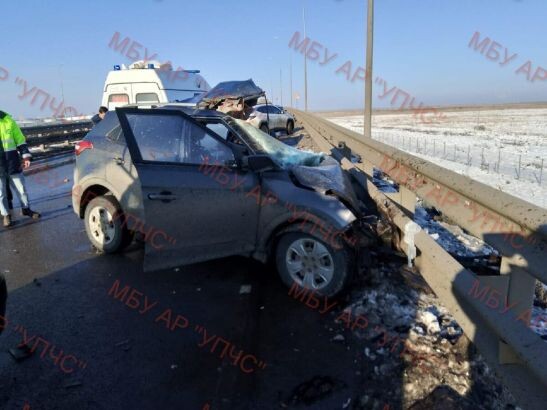 Из-за силы удара двигатель легкового автомобиля вылетел на правую полосу и попал в «БМВ Х3», который стоял на обочине. В это же время большегруз продолжал тормозить и столкнулся со вторым легковым автомобилем марки ВАЗ.