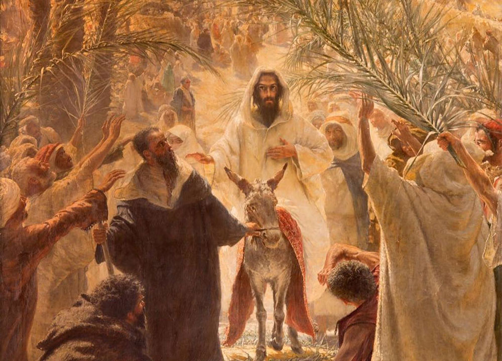 В тот день Он смиренно въехал в Иерусалим навстречу Своей смерти. Несколькими днями позже на Голгофе Его пригвоздили ко кресту между двумя разбойниками, и Бог возложил на Него беззакония всех нас.