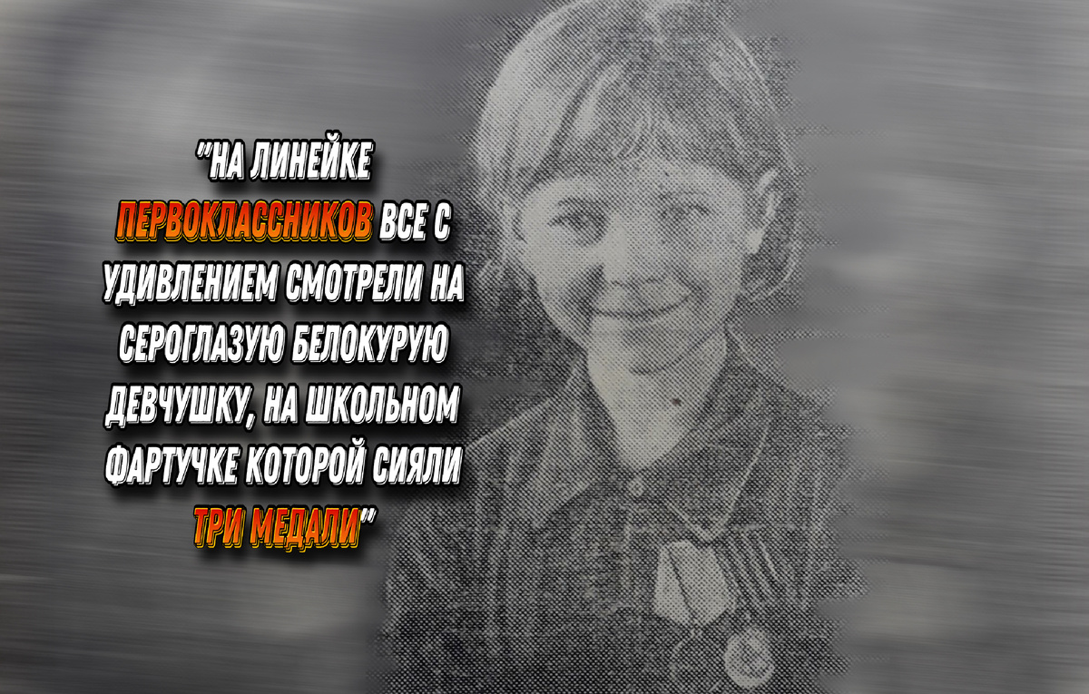 В своем полку Вера служила до самого окончания войны и была демобилизирована для того, чтобы пойти в 1 класс. На школьной линейке родители, учителя и ученики - все с удивлением смотрели на сероглазую белокурую девчушку, на школьном фартучке которой сияли три медали: "За боевые заслуги", "За взятие Кенигсберга" и "За победу над Германией в Великой Отечественной войне 1941-1945 гг."!
