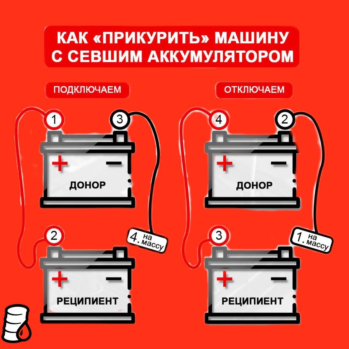 7. Если мотор не завёлся, оставляйте провода и заведите донора минут на 10. Затем обязательно заглушите и повторите прошлый шаг.