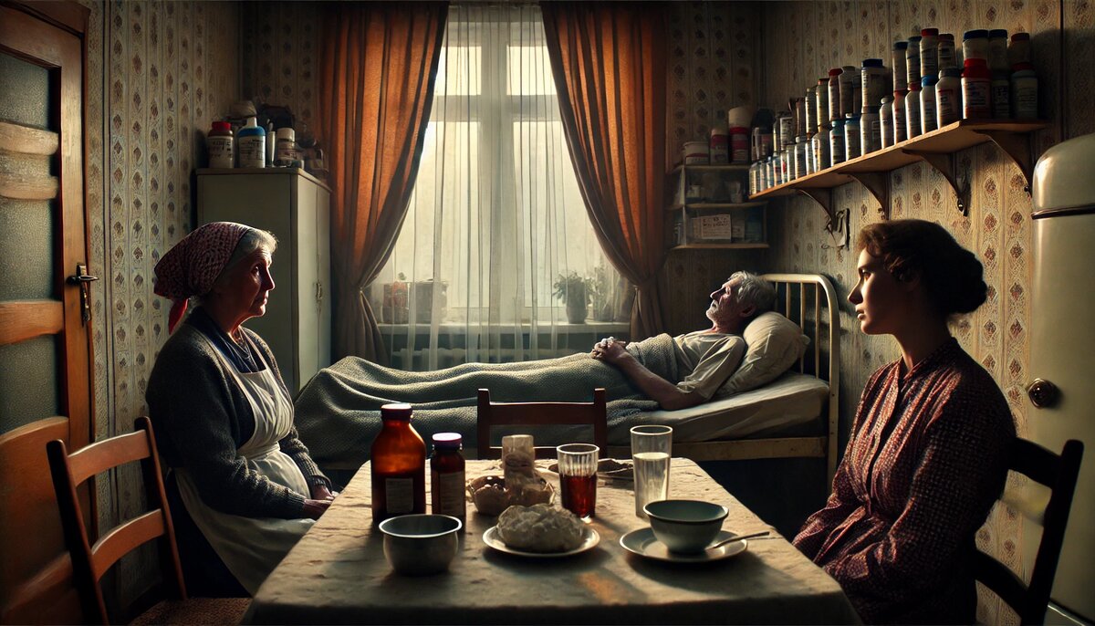 Марина молчала, сжимая чашку в руках. В углу топталась тётя Клава, не решаясь вмешаться. Под глазами самой Марины залегли тени, а в волосах давно проступила седина. Спина болела после бесконечных нагрузок – тяжёлые мужнины руки и ноги, которые она по нескольку раз в день поднимала, чтобы сделать перевязку или помочь перевернуться.